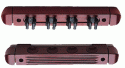 Product Name: Snooker and Pool Cue Rack Snooker and Pool Cue Rack Cue rack holds 4 snooker or pool cues Mahogany colour top part has 4 plastic clips to grip the cues the bottom piece has been scalloped out for the cues to sit in. |