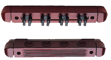 Cue rack holds 4 snooker or pool cues Mahogany colour top part has 4 plastic clips to grip the cues the bottom piece has been scalloped out for the cues to sit in.
